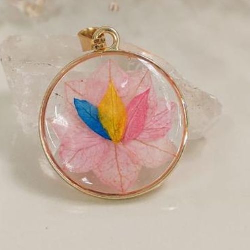 Presentamos el Dije de la Llama Trina, una joya exquisita hecha a mano a base de pétalos de flores naturales. Este hermoso dije no solo es una pieza de arte, sino también un símbolo de armonía, equilibrio y protección.